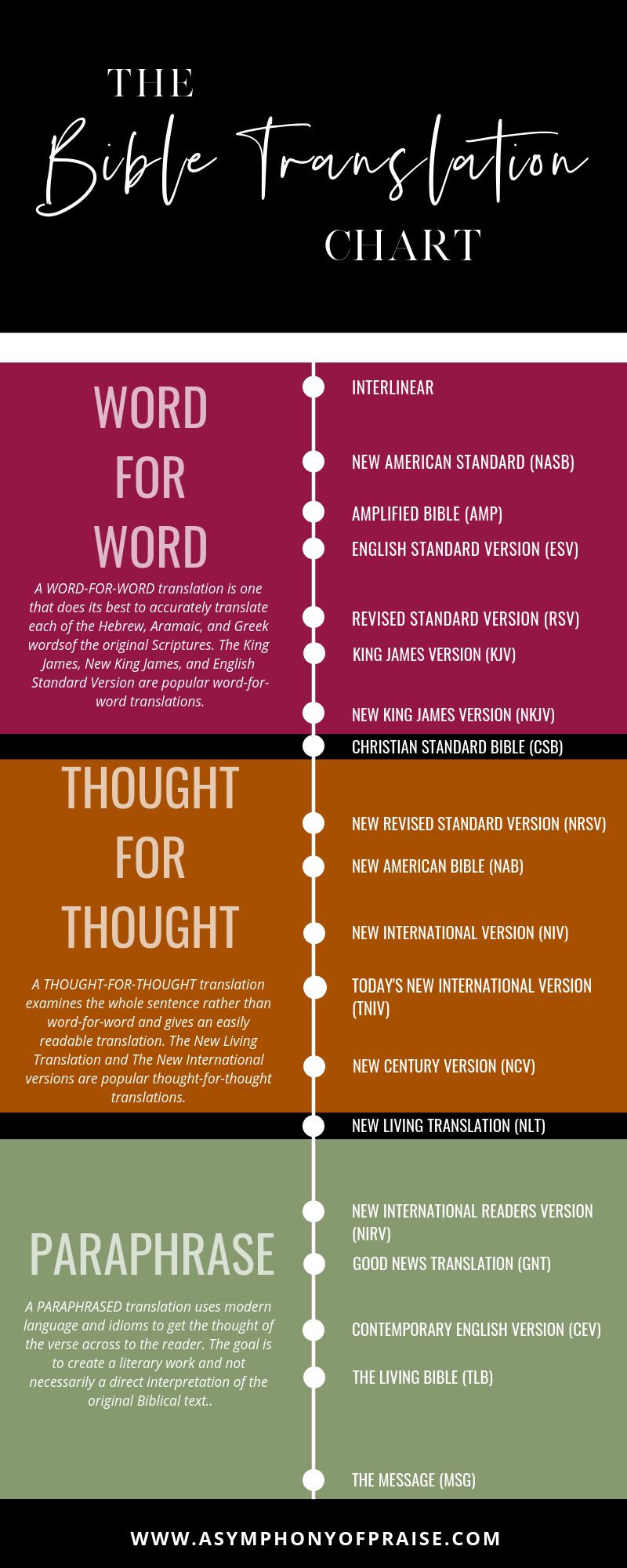 The picture here is a little visual that shows the most common versions and what category they fall in, plus an explanation of the difference (borrowed from A Symphony of Praise!)